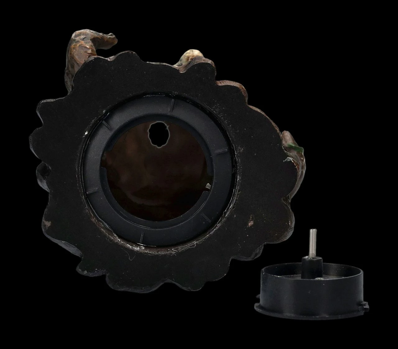 Was will er erzählen, der Greenman Ent König, wenn das Räucherstäbchen brennt und seinen Kopf in duftenden Nebel hüllt? Der 30,5 cm hohe, 12 cm breite und 10,5 cm tiefe fantasievolle Räucherhalter aus handbemaltem Kunststein (Polyresin) hat in dem Baumstumpf auf dem Kopf des Greenmanss eine Halterung für Räucherstäbchen, die jedoch nicht in der Lieferung enthalten sind. Eine große Auswahl an verschiedenen Wohlfühldüften finden Sie in unserem Shop.