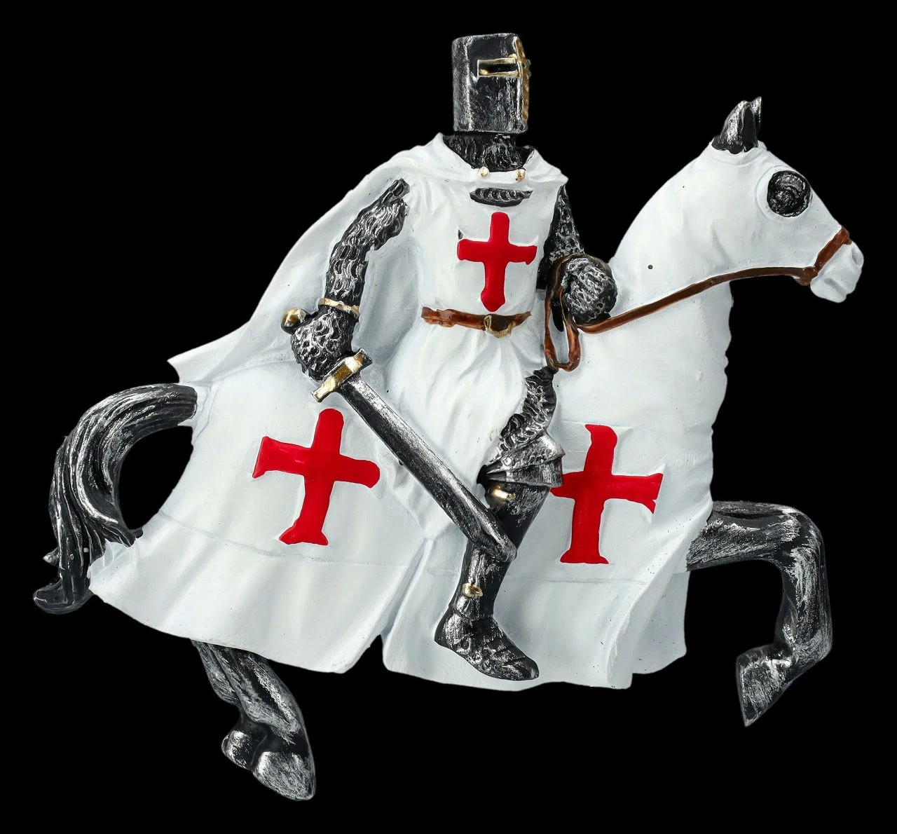 Das fantastische Magnete-Set mit den Kreuzrittern aus handbemaltem Kunststein (Polyresin) besteht aus 2 x 6 Rittern mit unterschiedlichen Schwertern. Mit den leuchtend roten Kreuzen auf ihren weißen Umhängen und den ebenfalls weißen Decken der Pferde mit roten Kreuzen sind die Ritter-Magnete nicht nur sehr dekorativ, sondern auch sehr praktisch. Die Ritter sind jeweils 8 cm hoch, 9 cm breit und 1,5 cm tief. Dieses herrliche 12er Set Magnete mit Kreuzrittern auf ihren Pferden sind ein perfektes Geschenk und fantastisch dazu geeignet, mit Ritter-Freunden geteilt zu werden.