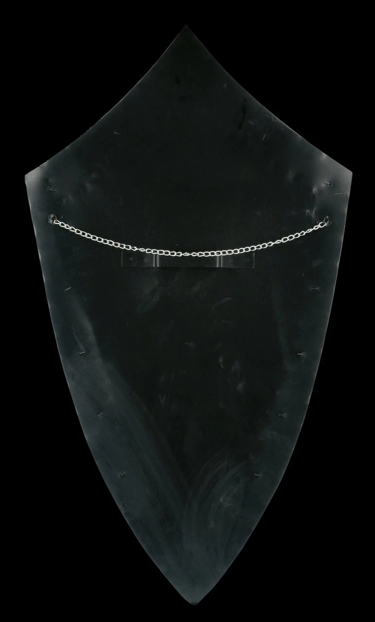 Ein wunderschönes und edles Ritter Schild ist dieses tolle Schild mit dem Keltenkreuz in der Mitte und den beiden keltischen Knoten über und unter dem Kreuz. Das schöne silberfarbene Schild ist aus Metall gefertigt. Das Ritter Schild ist beeindruckende 90 cm hoch, 50 cm breit und 4 cm tief und es ist zum Hängen. Das tolle Schild ist außerordentlich dekorativ und auch ein besonderes Geschenk für alle Ritter Fans.
