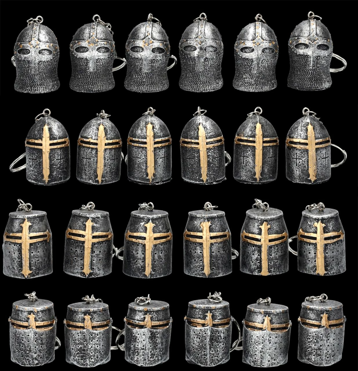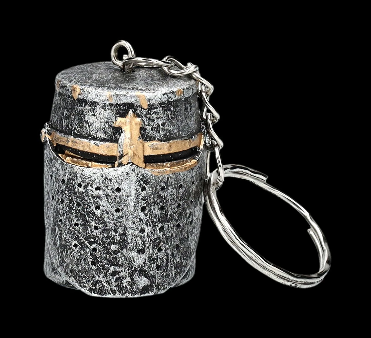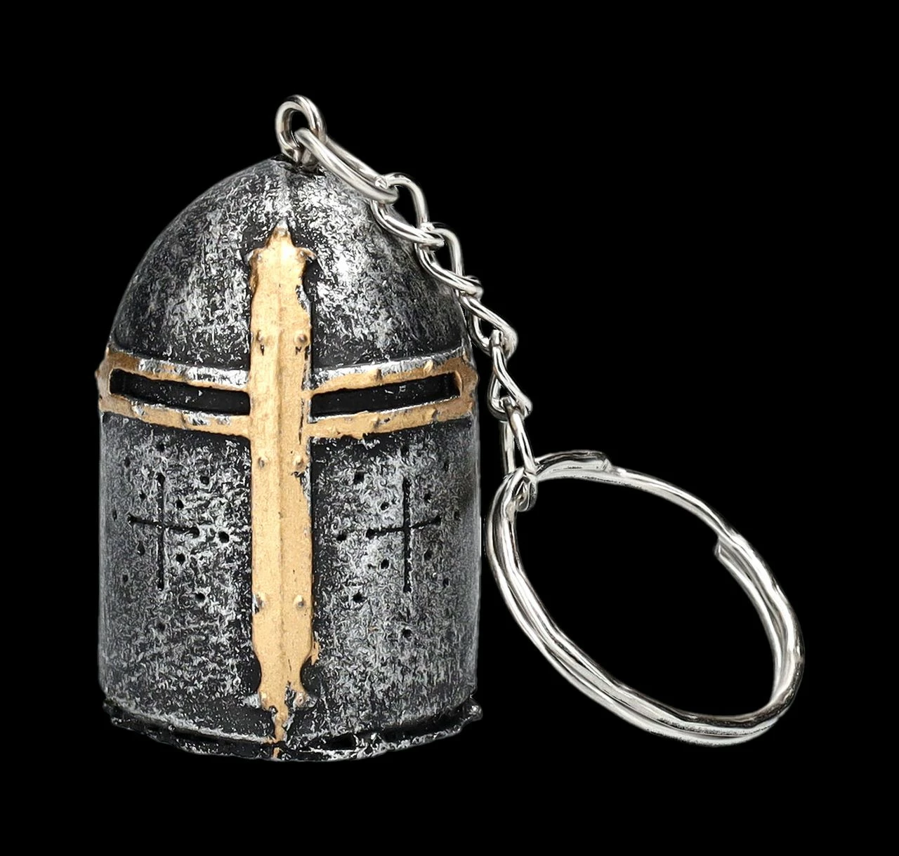 Vier mal sechs unterschiedliche Ritterhelme enthält dieses fantastische Schlüsselanhänger-Set. Als Präsent für ein Ritter-Treffen oder ein toller Preis für ein Ritterturnier sind diese fantastischen Helme als Schlüsselanhänger perfekt geeignet. Sie sind aus Kunststein (Polyresin) gefertigt und metallfarben mit zum Teil goldenen Akzenten handbemalt. Die tollen Schlüsselanhänger sind je 4 cm hoch (die Gesamthöhe mit Anhänger ist 9,5 cm), je 2,5 cm breit und je 3 cm tief. Große und kleine Ritter werden sich über diese fantastischen Schlüsselanhänger mit Helm als Geschenk sicherlich sehr freuen.