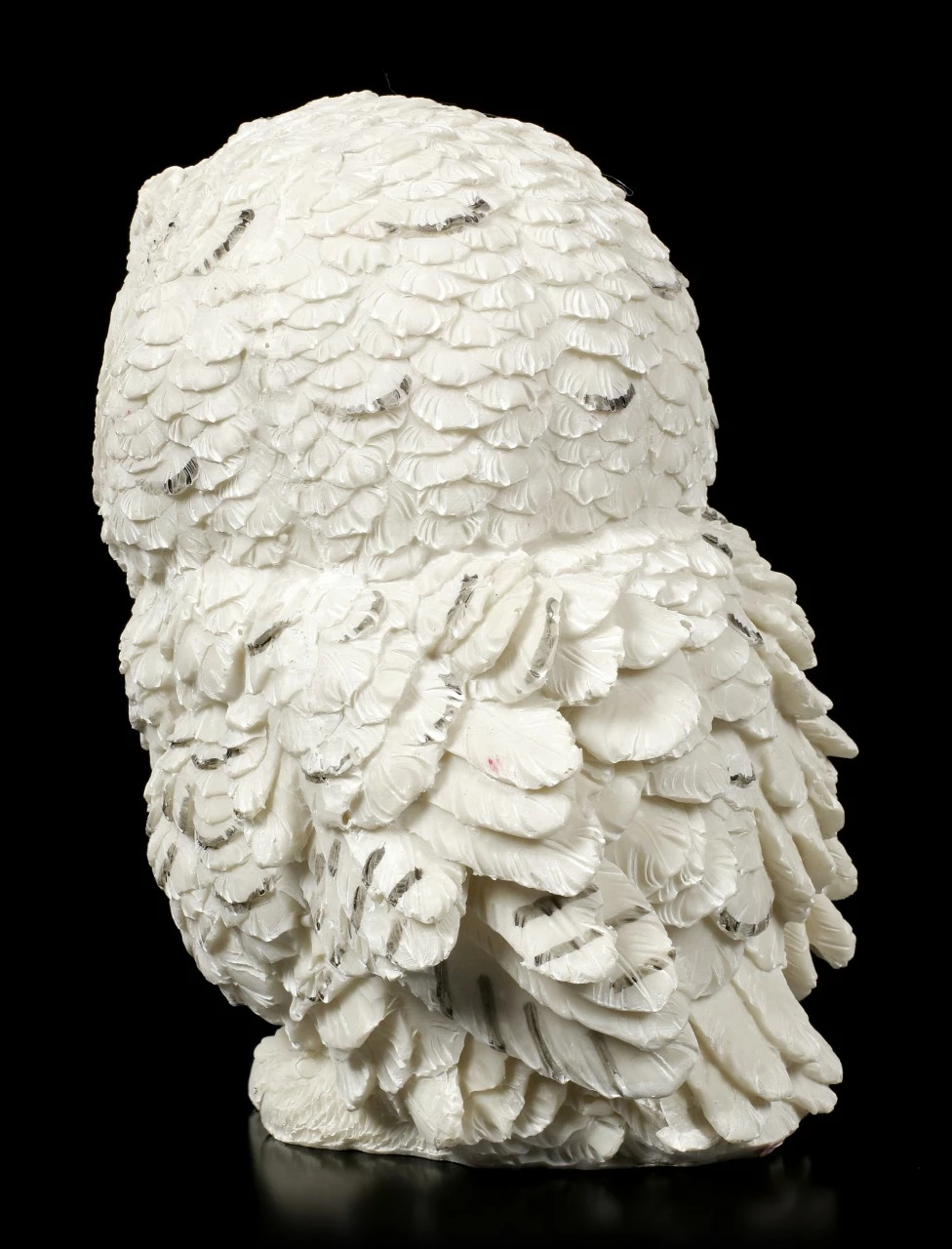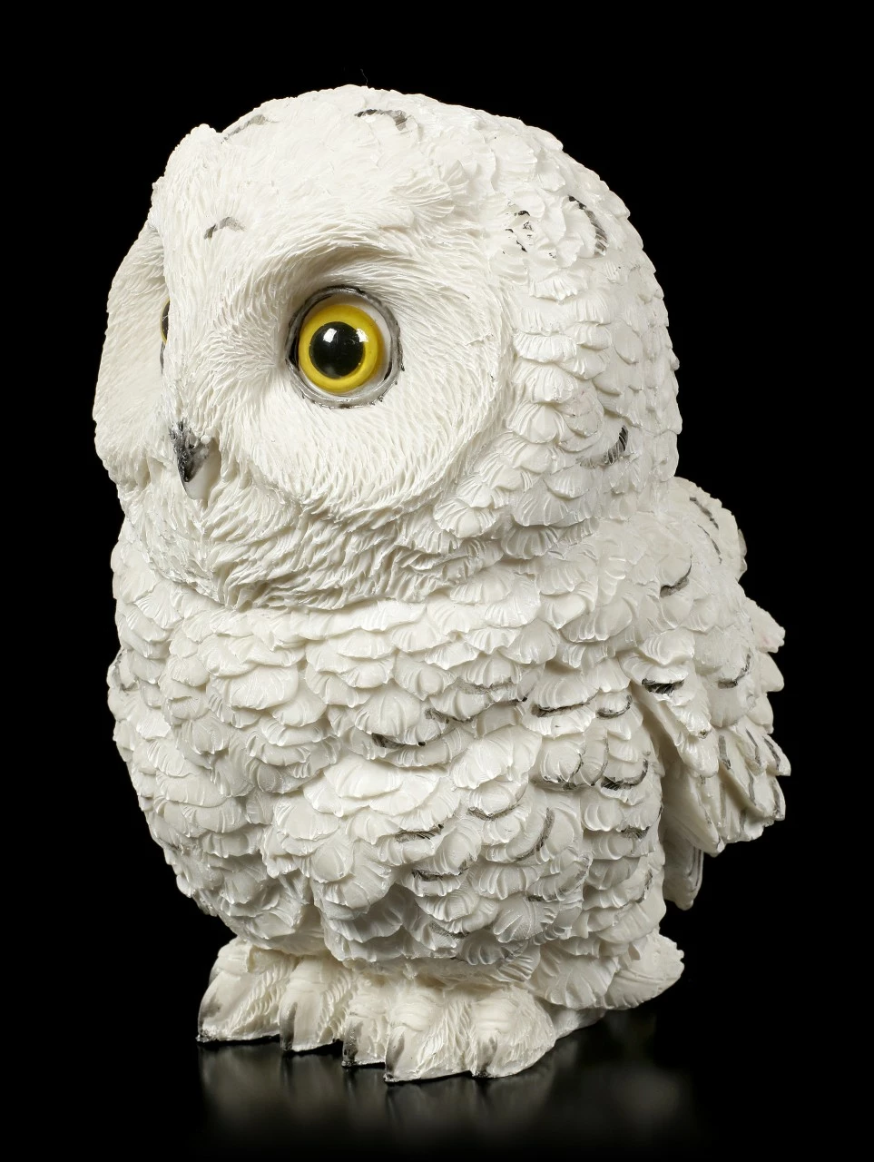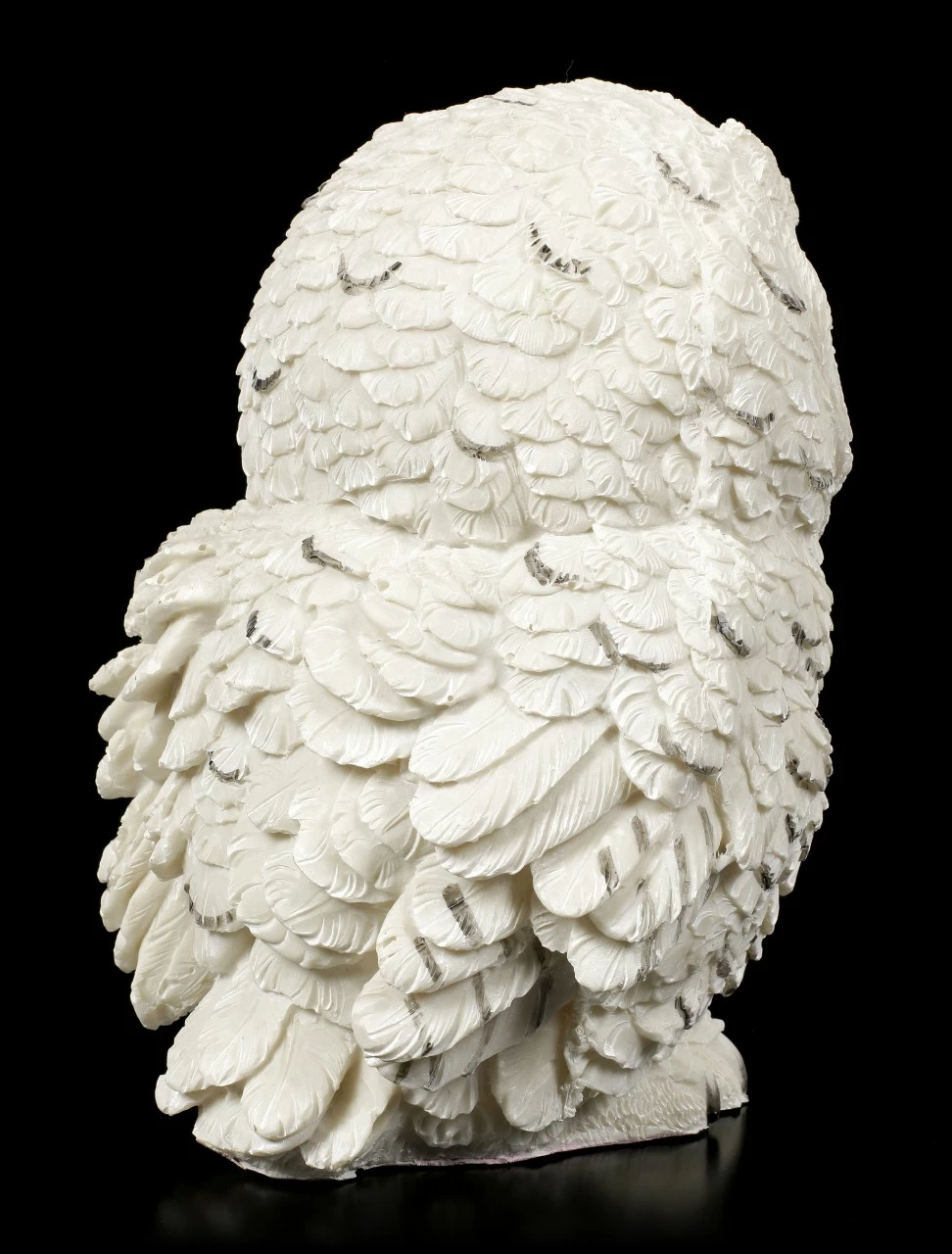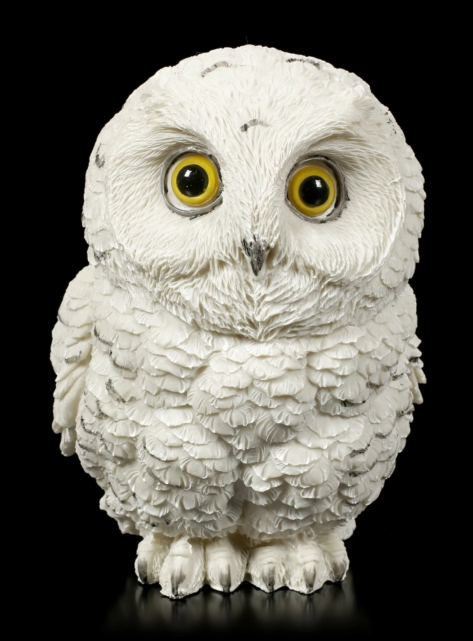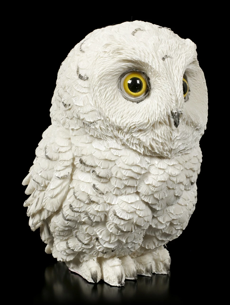 Die süße kleine Schneeeule schaut Ihren Besuchern mit großen gelben Kulleraugen entgegen und beobachtet ganz von hoch oben in Ihrem Bücherregal, was so vor sich geht. Die handbemalte Vogel Figur aus Kunststein (Polyresin) wird Sie begeistern. Schauen Sie sich nur das wunderbare Gefieder an.