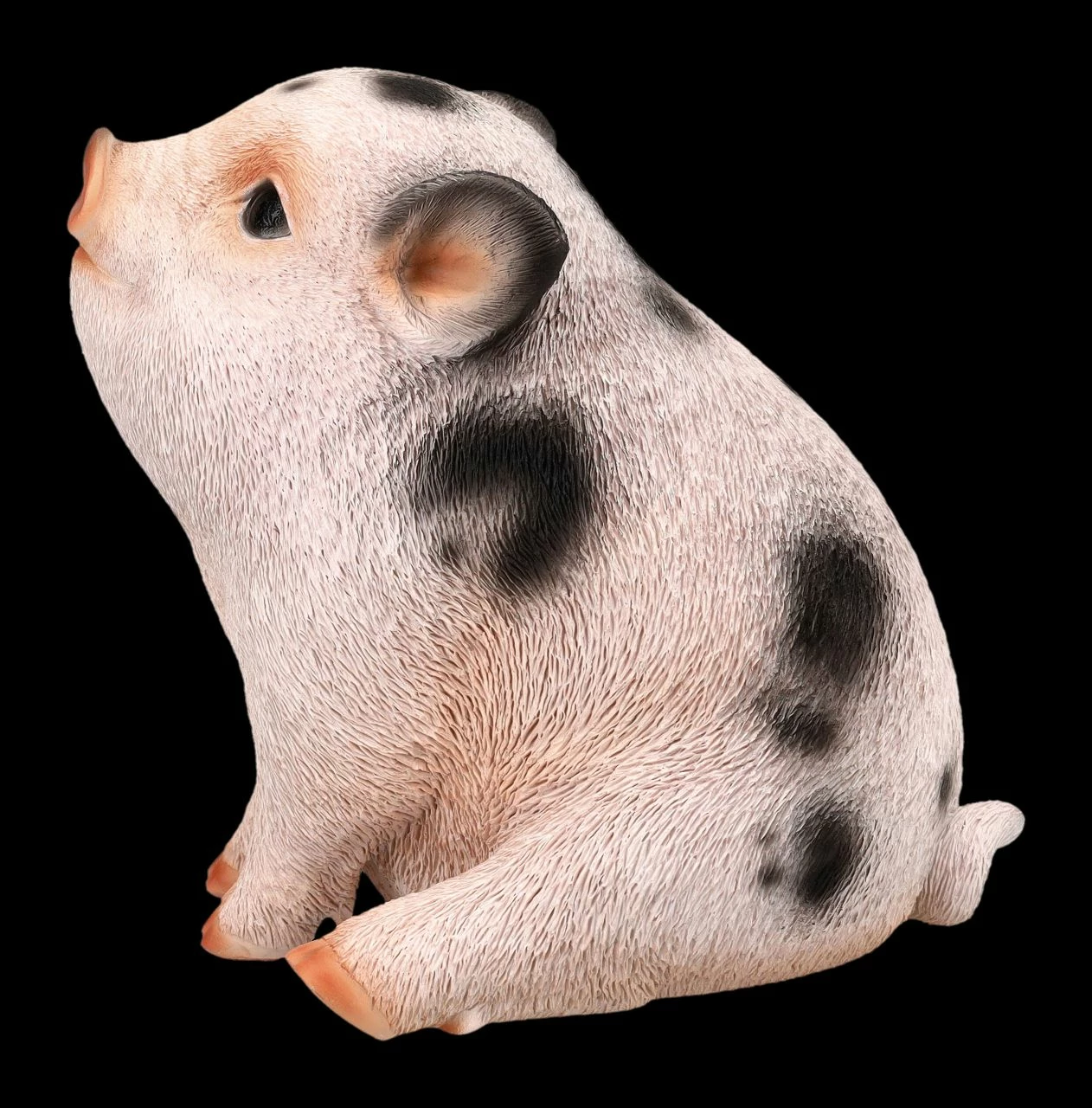 Oh wie niedlich – das wird sicherlich jeder sagen, der dieses kleine gefleckte Schweinchen Baby bei Ihnen entdeckt. Mit treuherzigem Augenaufschlag scheint das dicke gefleckte Ferkelchen nach Streicheleinheiten zu betteln. Oder nach Futter? Jeder wird begeistert sein, wenn er dieses 13,5 cm hohe, 12,5 cm breite und 13,5 cm tiefe kleine Schweinchen Baby geschenkt bekommt. Wie alle Figuren von HotAnt ist auch das liebevoll von Hand bemalte dicke Ferkelchen absolut realistisch aus Kunststein (Polyresin) gefertigt. Nicht nur zum Geburtstag oder zu Sylvester ist das putzige Glücksschweinchen ein tolles Geschenk. Mit den anderen Schweinchen von HotAnt aus unserem Shop kann sich jeder sogar seinen eigenen Schweinestall schaffen.
