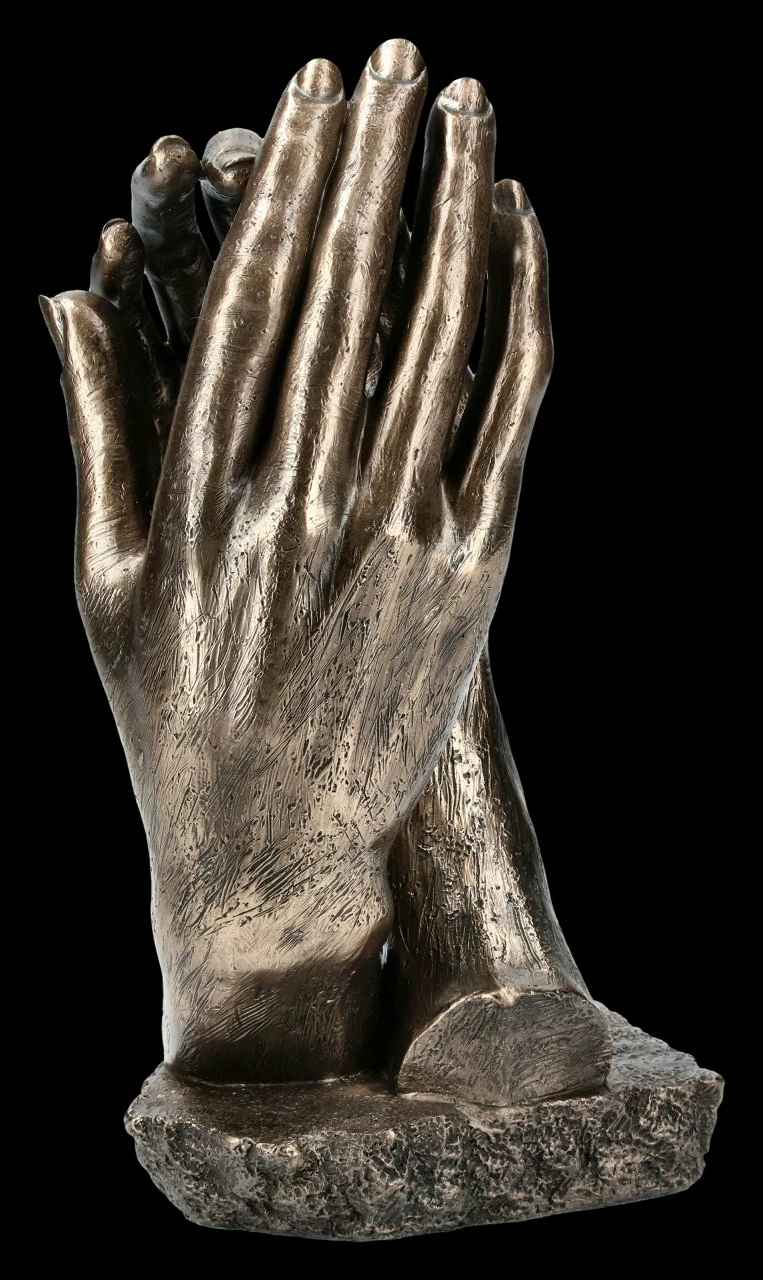 Diese aus edel bronziertem Kunststein (Polyresin) gefertigte gelungene Nachbildung des Kunstwerks ‚Die Kathedrale‘ von Auguste Rodin stammt aus der Studio Collection Serie von Veronese. Mit dem französichen Bildhauer und Zeichner Auguste Rodin startete die Zeit der modernen Plastik und Skulptur. Er wurde von der Antike und von den großen Renaissance-Künstlern inspiriert. Der Künstler beschäftigte sich mit der Ausdrucksstärke und Symbolik von Händen als Symbol der kreativen, göttlichen Schaffenskraft. Sie umfassen einen Raum, indem eine Idee wie ein Funke gleich entsteht, ohne sich zu berühren.