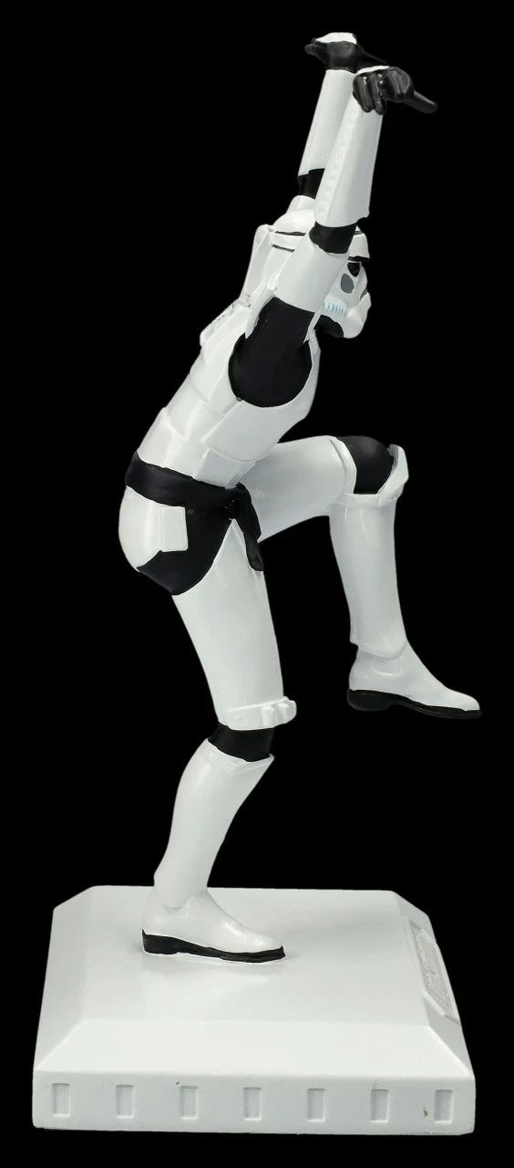 Selbst ein Stormtrooper braucht mal Pause zwischen den Angriffen. Also hat sich dieser Stormtrooper vermutlich einen uralten Karate-Film angeschaut und gesehen, dass der Sieg mit einem sogenannten Kranich-Kick errungen wurde. Na, dann heißt es üben, üben, üben – und bei diesem Stormtrooper schaut es doch schon recht gekonnt aus…. Die 21 cm hohe, 12 cm breite und 8,5 cm tiefe Stormtrooper Figur ist aus handbemaltem hochwertigen Kunststein (Polyresin). Als offiziell lizenziertes Stormtrooper Merchandise ist der Stormtrooper beim ‚Crane Kick‘ eine tolle Ergänzung zur Sammlung. ‚Der Kranich‘ ist aber natürlich auch ein fantastisches Geschenk für Fans und kommt inklusive Geschenkkarton.