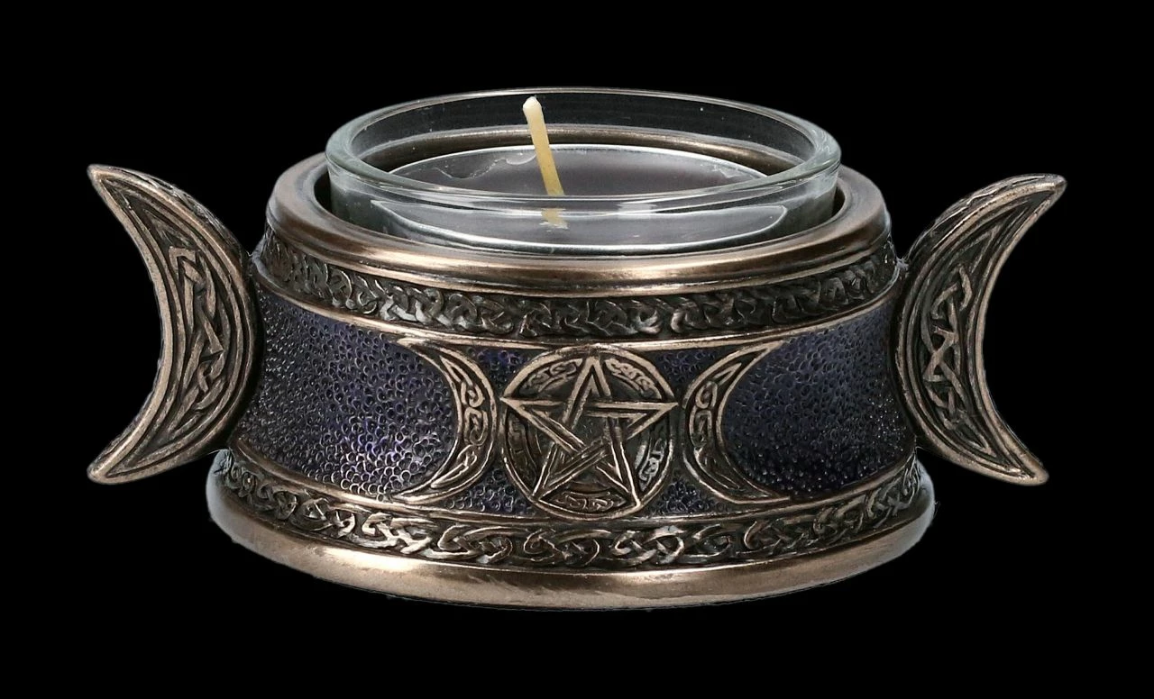 Mystischer Kerzenhalter mit Monden und Pentagramm