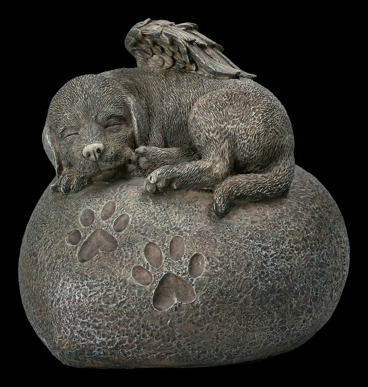 Es ist immer traurig, wenn der geliebte und treue Hund über die Regenbogenbrücke gehen muss. Mit dieser wunderschönen Hundeurne aus handbemaltem Kunststein (Polyresin) können Sie Ihr geliebtes Haustier immer in Ihre Nähe haben. Der kleine Hundengel wird gut über ihn wachen.