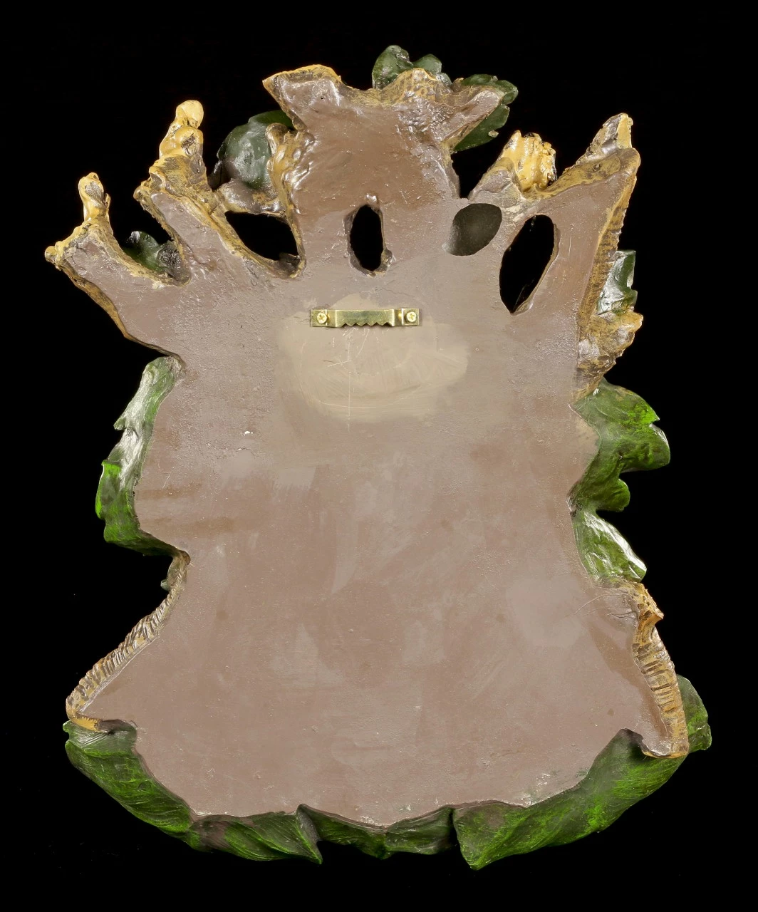 Das Waldgeist Wandrelief „Fütterer des Waldes“ wurde aus hochwertigem Kunststein gefertigt und im Anschluss handbemalt. Das Wandrelief zeigt einen Waldgeist in Form eines Baumgesichts mit Blättern als Bart und Haar. Mit Blättern bewachsene Äste bilden seine Haare und die Blätter umranden sein Gesicht. Die Unterseite seines Blatt-Bartes ist angehoben. Sie bildet so eine Schale für kleine Gegenstände oder auch für Vogelfutter. Seine weises Gesicht mit den klugen und ruhigen Augen werden dabei liebevoll auf die Vögel blicken, wenn sie sich ihr Futter holen.