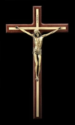 Ein wunderbares Gechenk für einen Gläubigen ist dieses edel und trotzdem schlicht wirkende Kreuz. Jesus am Kruzifix aus der Studio Collection von Veronese wurde detailreich aus hochwertigem Kunststein (Polyresin) gefertigt und sorgfältig bronziert. Es wirkt beinahe wie ein Holzkreuz mit glänzenden Metall-Applikationen. Das 26,5 cm hohe, 14,5 cm breite und 3 cm tiefe Kruzifix ist zum Hängen.