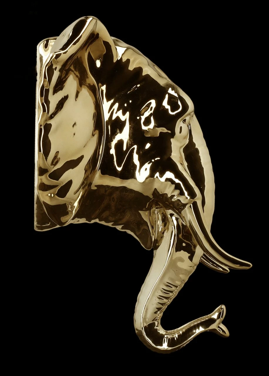 Mit diesem edlen poliert-glänzendem Elefantenkopf demonstriere ich, dass ich Elefanten liebe und sie daher nicht real als Trophäe an meine Wand hänge. Der 30,5 cm hohe, 31 cm breite und 22,5 cm tiefe Elefant zum Hängen wurde aus Kunststein (Polyresin) sorgfältig gefertigt. Elefanten gelten auch als Glücksbringer und so ist dieser schöne Elefantenkopf nicht nur eine elegante Deko, sondern auch ein wunderbares Geschenk für jemanden, dem man gerne Glück und ein langes Leben wünschen möchte.