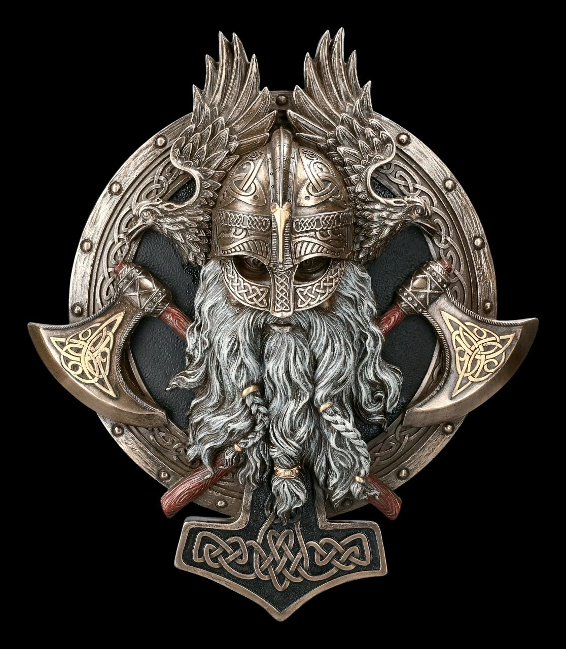 Dieses Wandschild wird jeden Wikinger begeistern. Eine unglaublich detailreiche und wahrlich faszinierende Deko ist das Wikinger Schild Walhalla aus der Studio Collection von Veronese. Edel bronziert und fein abgestimmt coloriert wird das Wandbild aus sorgfältig gefertigtem Kunststein (Polyresin) zum absoluten Highlight an der Wand eines Wikingers. Die facettenreiche Wanddeko mit der Höhe von 26 cm, einer Breite von 22,5 cm und der Tiefe von 5 cm zeigt den Kopf eines behelmtem Wikingers mit Streitäxten und vielen weiteren Details. Das Wandbild Walhalla ist zum Hängen und ein tolles Geschenk für jeden Wikinger.