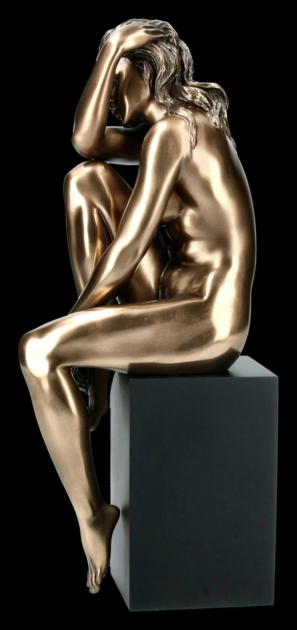 Ganz in sich gekehrt sitzt die anmutige junge Frau auf einem Monolithen und lässt ihren sinnlichen Körper bewundern. Woran sie wohl gerade denkt? Edle Bronze-Optik von Veronese und Eyecatcher Effekt garantiert.