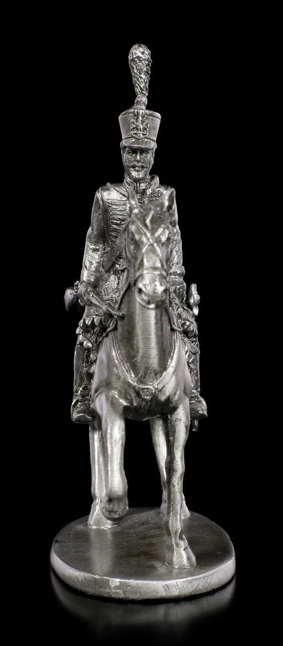 Der reitende Soldat aus der Serie Myth & Legends – Historical Knights von Veronese ist detailreich verziert und zeigt einen stolzen Soldaten mit seiner Muskete hoch oben auf seinem Pferd. Die zinnfarbene Soldaten Figur wird in einer passenden Geschenkbox geliefert und ergänzt Ihre Zinn Figuren Sammlung um ein wunderbares Stück.