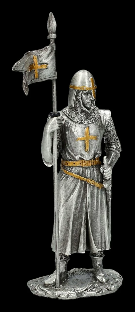 Aus der ‚Historical Knights‘ Collection von Veronese stammt dieser kunstvoll und fein gearbeitete Kreuzritter aus Zinn mit Fahne. Der sorgsam handbemalte Zinnritter ist 10,5 cm hoch (mit der Fahne sind es 13,5 cm), 5 cm breit und 3,5 cm tief. Sammler werden von diesem meisterhaften Kreuzritter begeistert sein. Er ist auch ein fantastisches Geschenk und kommt mit einem toll bedruckten Geschenkkarton.