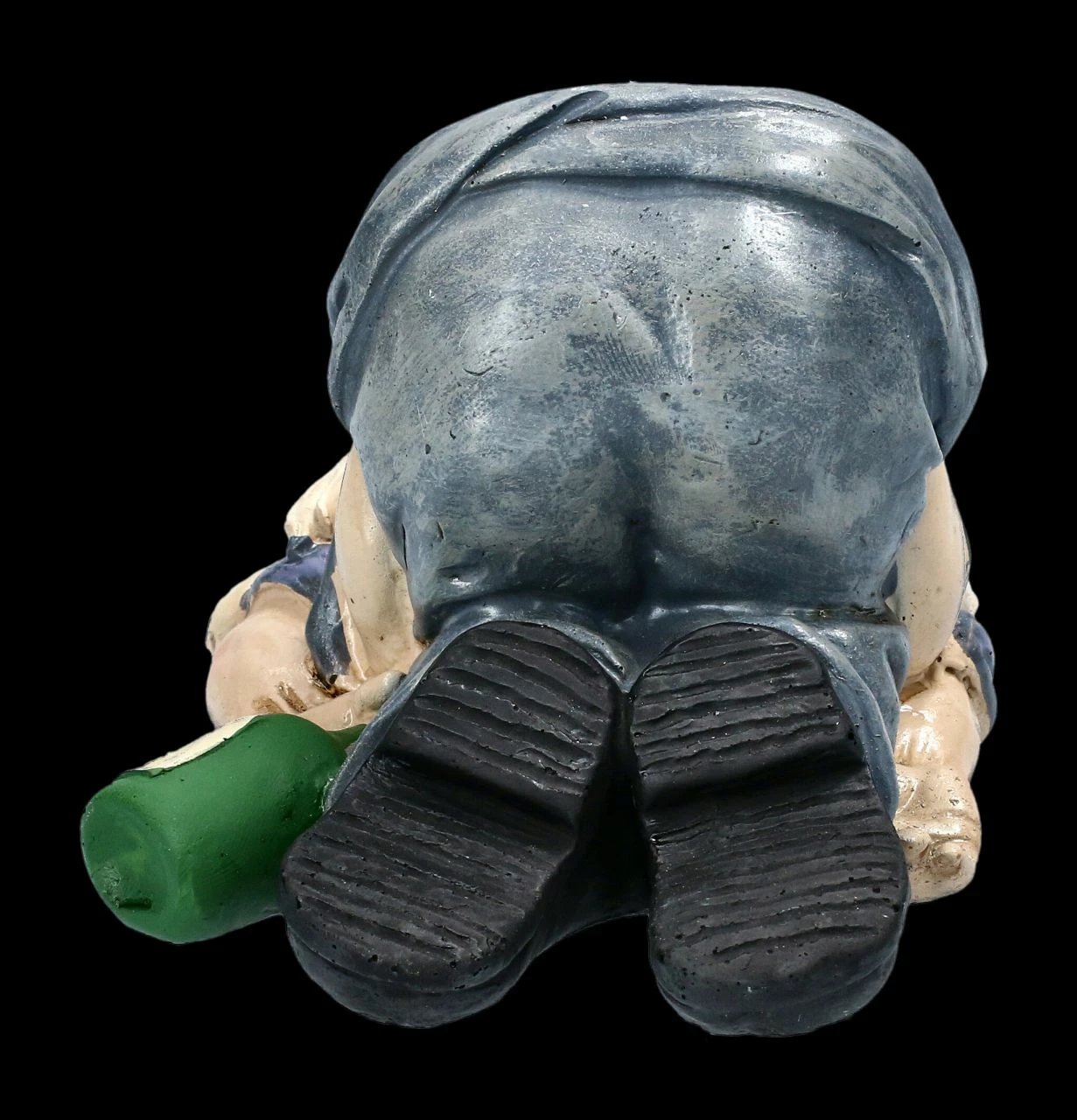 Huch, der Weg von der Waldschänke nach Hause wackelt aber ganz fürchterlich. Da leg ich mich doch lieber hin und warte, bis sich der Weg wieder beruhigt hat. Ein kleines Schläfchen mit süßen Träumen kann nicht schaden, denkt sich dieser kleine lustige Zwerg. Beschwipst hat er sich einfach auf den Waldboden gelegt und ist selig lächelnd eingeschlafen. Dass ihm dabei die Hose verrutscht, ist ihm so was von egal. Diese freche Zwergenfigur ist aus liebevoll handbemaltem Kunststein (Polyresin) gefertigt. Der Zwerg ist 7,5 cm hoch, 17,0 cm breit und 9,0 cm tief und hofft sehr, bei seinem Mittagsschlaf nicht gestört zu werden.